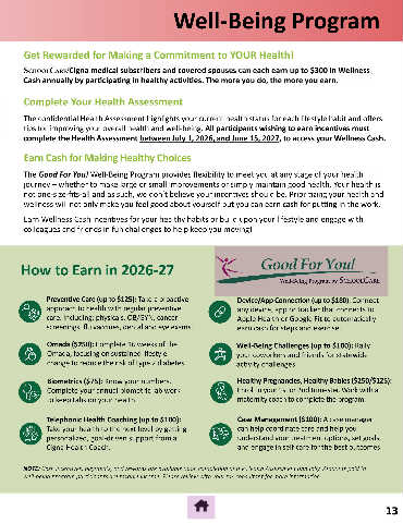 Total Well-Being SCHOOLCARE/Cigna medical subscribers and covered spouses can each earn up to $300 in Wellness